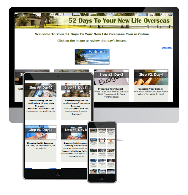 This is a focused program that will lead you, from Day 1 through Day 52, through every aspect of planning for a new life overseas.
